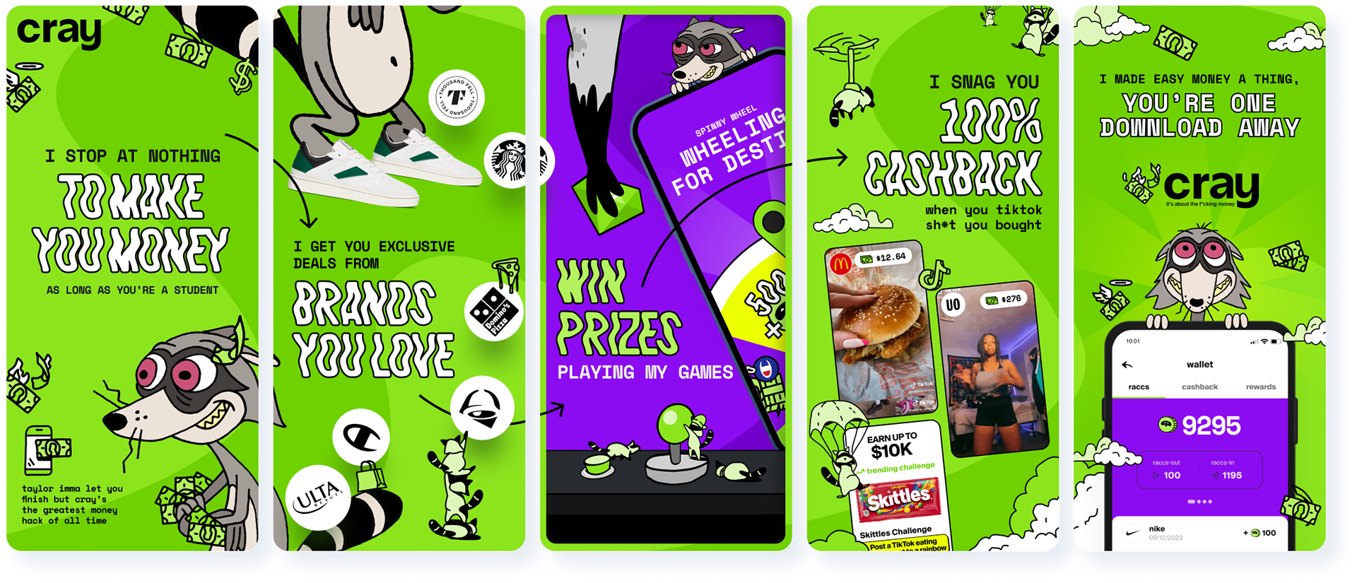 Client: Cray - App that let students score great deals by sharing TikTok videos about the products/brands they loved.