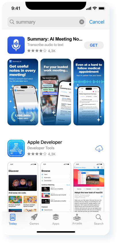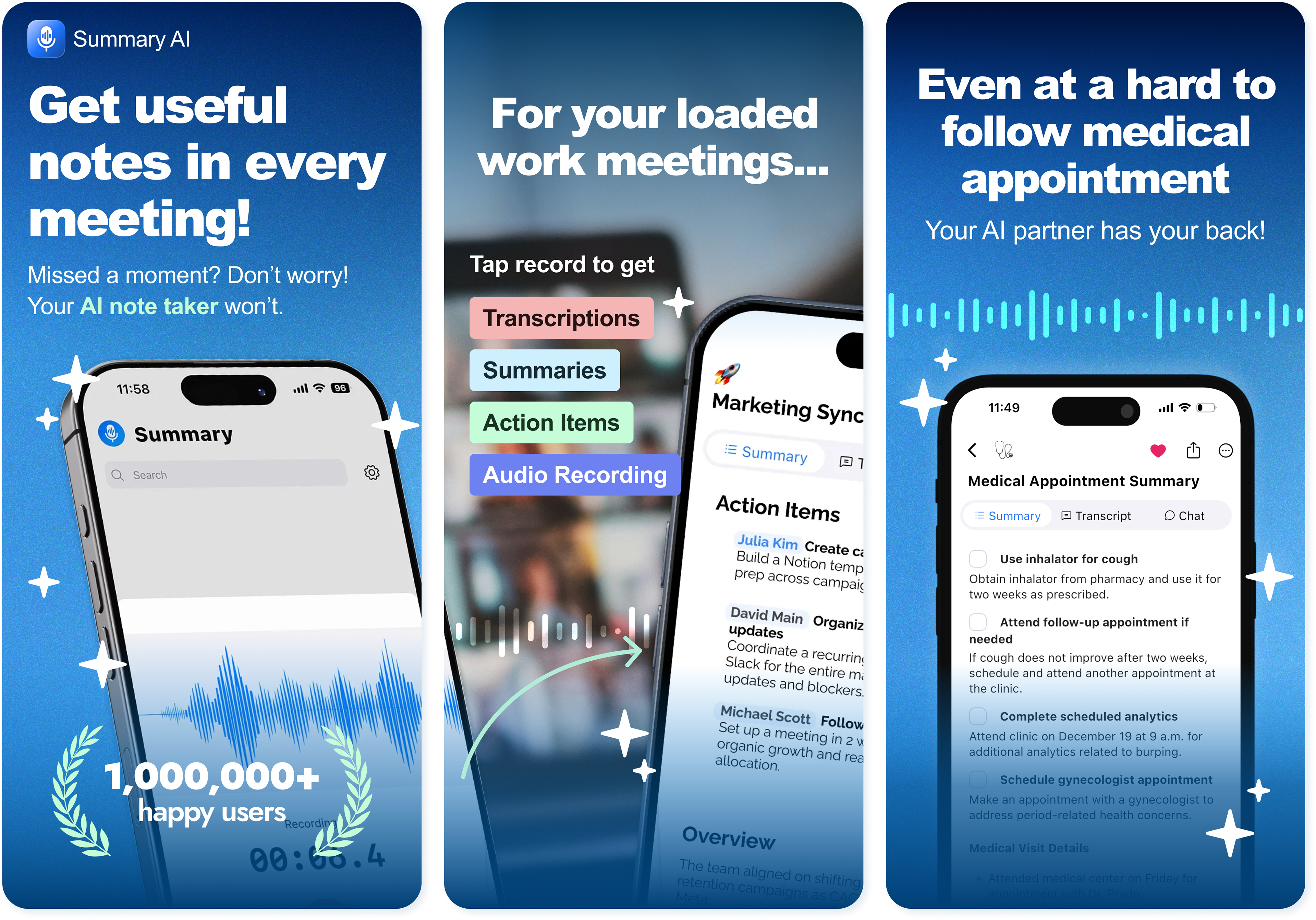 Client: Summary AI - App that lets users record meetings to get summaries and actionable items.