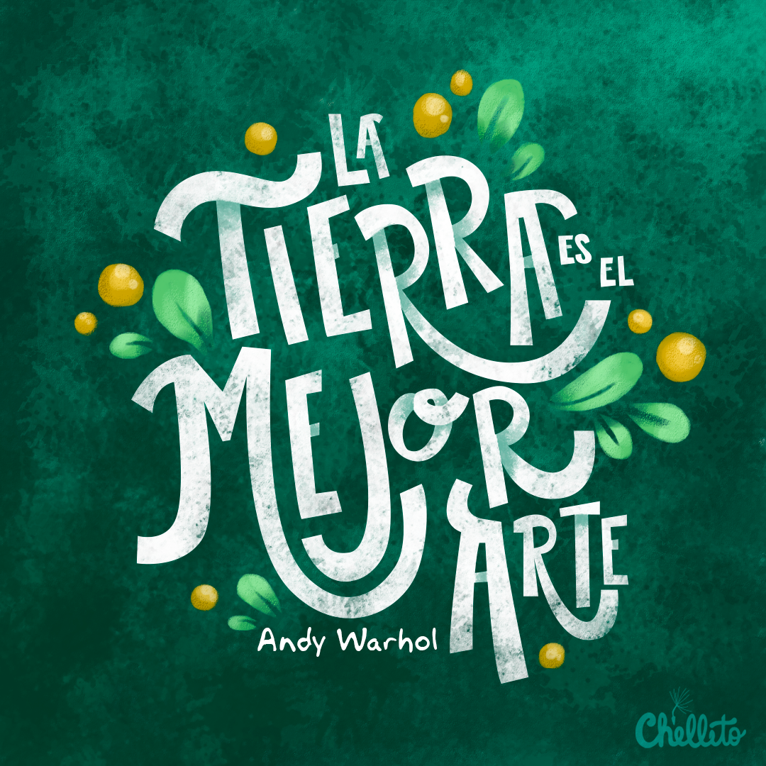 Using Andy Warhol's quote "Earth is the best art" in spanish.